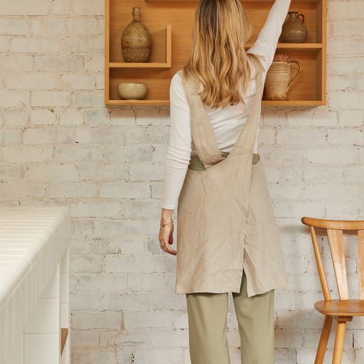 Carlotta and Gee aprons are made from 100% French linen with an extra large pocket at the front and a sophisticated cross over at the back - this will become your kitchen essential